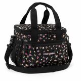 Rounded large-format lunch box, mesh pockets on sides, insulated, removable strap.