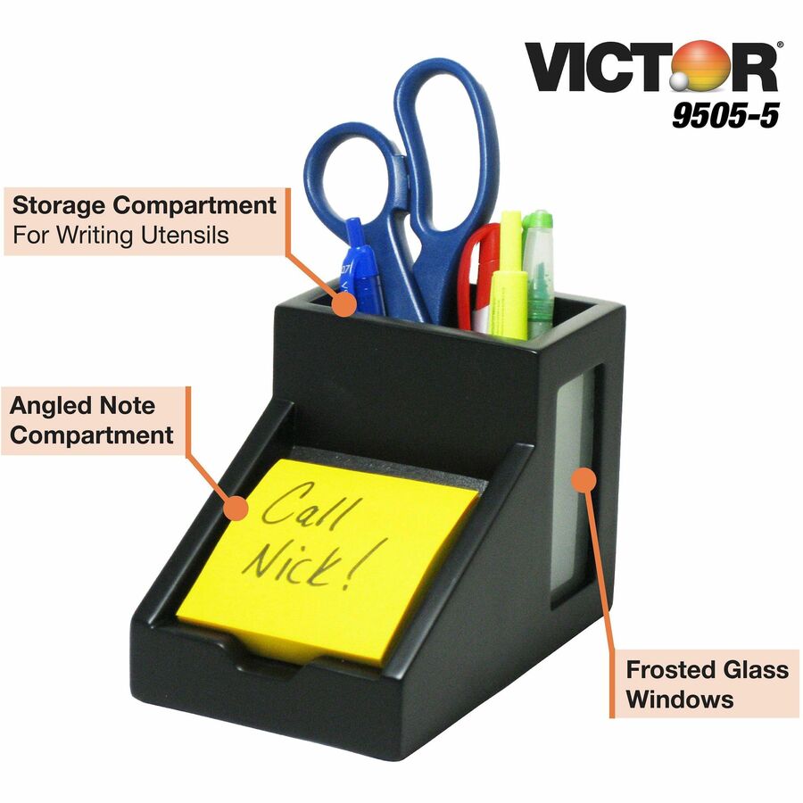 Les produits d'organisation de bureau Victor® se distinguent des accessoires de bureau concurrents en offrant des solutions fonctionnelles à la conception attrayante. Le porte-crayons avec porte-notes 9505 est une solution de rangement simple pour garder votre bureau propre et organisé. Idéal pour une utilisation personnelle ou professionnelle, ce porte-crayons avec porte-notes est un accessoire parfait pour tout bureau.,