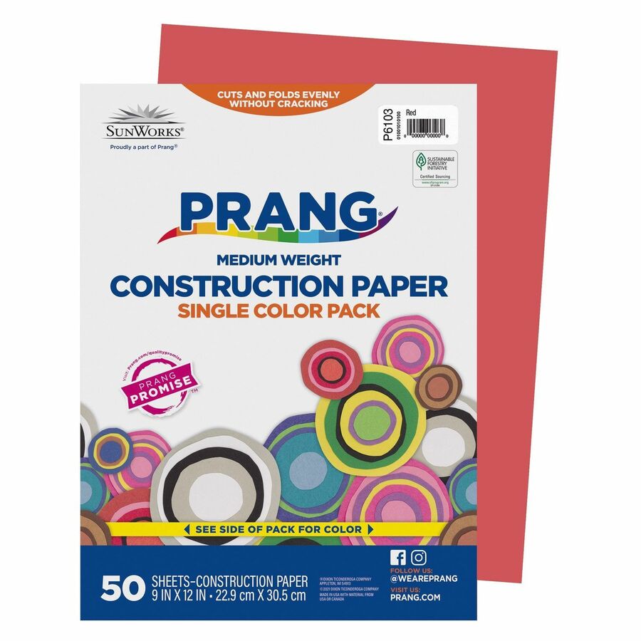 Fabrication de base faite de bois de poids moyen offrant le meilleur rapport qualité-prix en papier construction de qualité scolaire. Les couleurs vives et uniformes rendent le papier construction Prang parfait pour les projets scolaires, les arts et l'artisanat, ou tout simplement pour gribouiller. le papier construction légèrement texturé permet des coupes et des plis nets sans se fissurer. Recyclable.